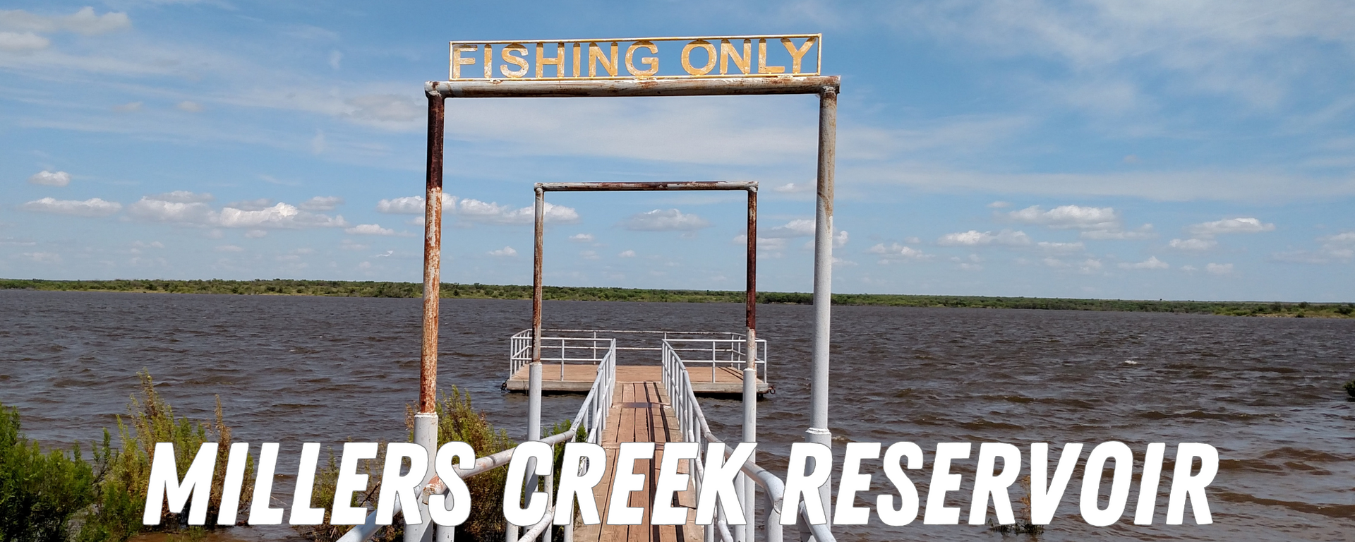 Millers Creek Reservoir sits about 17 miles east of Munday Texas. The lake has a surface area of 2,212 acres, and a max depth of 46ft, with 4.8ft of fluctuation and normal clarity of 1 to 2 ft. of visibility. Rocky shorelines, standing timber, and random brush piles provide ample habitat for the variety of species that live here. Large Mouth, White/Hybrid striped bass, Sunfish, Catfish and Crappie are in healthy populations. There is a fishing dock that extends far enough into the lake to remain above water in droughts, and a nice boat ramp with a very large paved parking lot. One of the best things about Millers creek Reservoir is that its completely free. No entry fee, no boating fee, no dock fee. Even camping is free. dispersed camp sites are available along the North East side of the lake. Live bait can be found at a local baitshop in Munday.
